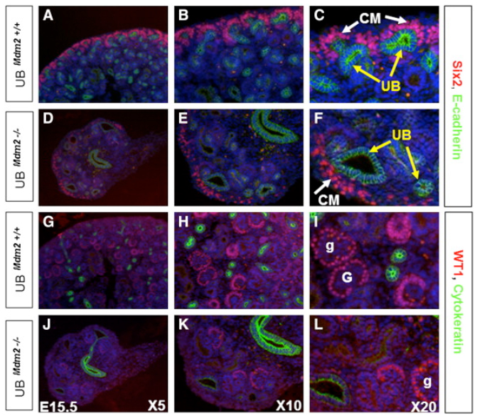 Note: Conditional mutant. Double labeled: red - Six2; green - Cdh1 (assay MGI:7330270).