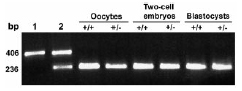 +/- two-cell E1.0 TS2: 2-cell stage conceptus Present Not Specified either: (involves: 129P2/OlaHsd * 129X1/SvJ * C57BL/6) or (involves: 129P2/OlaHsd * C57BL/6) Mapk8ip1tm1Wae/Mapk8ip1+Not Specified Two-cell stage embryo.