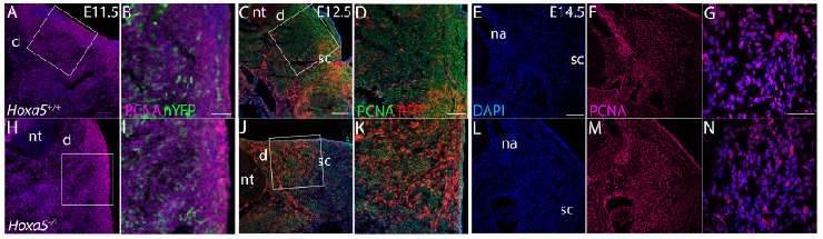 Note: Conditional mutant. Double labeled: green - Pcna; red - Cre reporter.