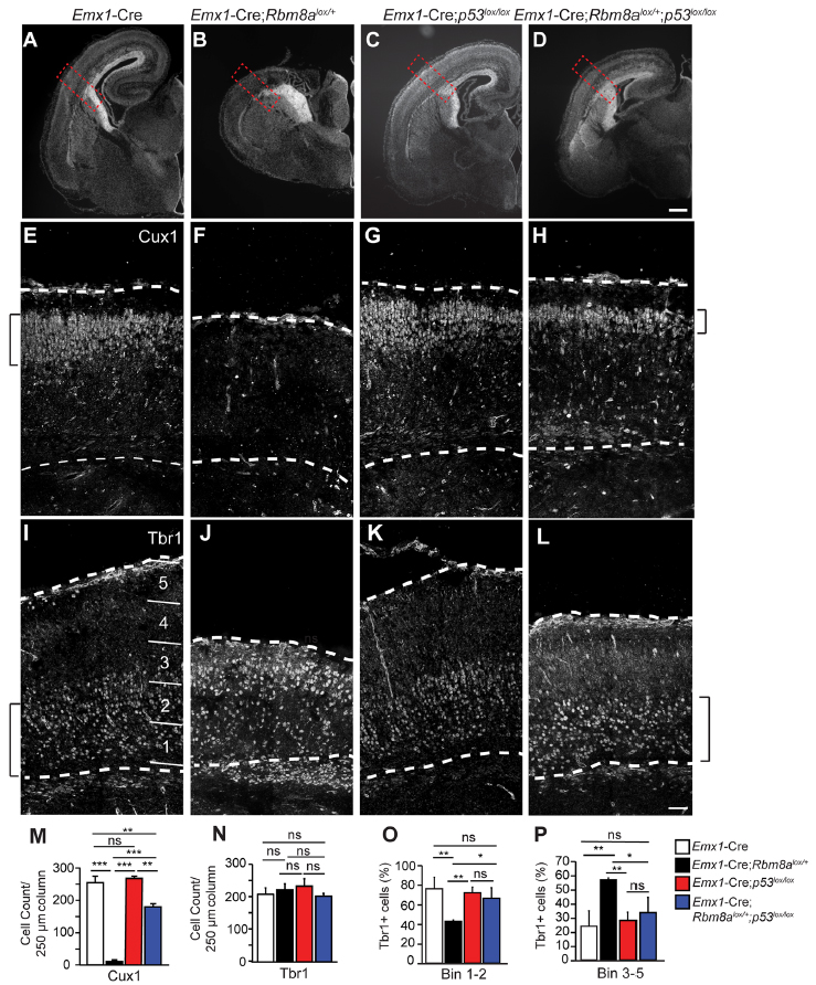 embryonic day 18.5; Emx1tm1(cre)Krj/Emx1+, Rbm8atm1Dlsi/Rbm8a+, Trp53tm1Brn/Trp53tm1Brn