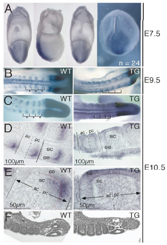 TS15: somite Present Regionally restricted 2B WT Expression was restricted to caudal somite halves.
