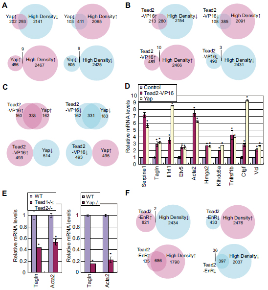 Reference: J:142508 Ota M, et al., Mammalian Tead proteins regulate cell proliferation and contact inhibition as transcriptional mediators of Hippo signaling. Development. 2008 Dec;135(24):4059-69