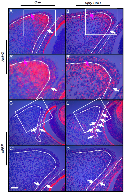 embryonic day 14.5; Spry1tm1Jdli/Spry1tm1Jdli, Spry2tm1Mrt/Spry2tm1Mrt, Tg(Pax6-cre,GFP)1Pgr/0