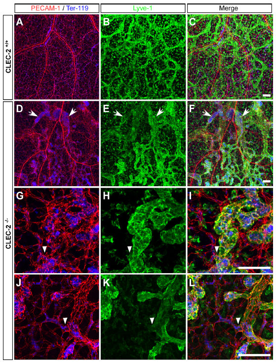 Note: Triple labeled: red - Pecam1; blue - Ly76/Ter-119 (assay MGI:7495704); green - Lyve1 (assay MGI:7495705).