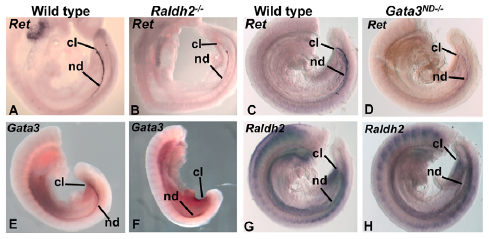 Reference: J:171426 Chia I, et al., Nephric duct insertion is a crucial step in urinary tract maturation that is regulated by a Gata3-Raldh2-Ret molecular network in mice. Development. 2011 May;138(10):2089-97