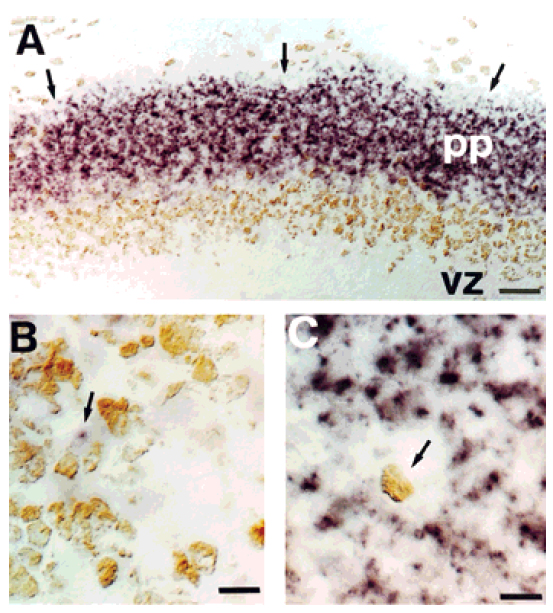 Note: Double labeled: blue - Myt1l; brown - BrdU.