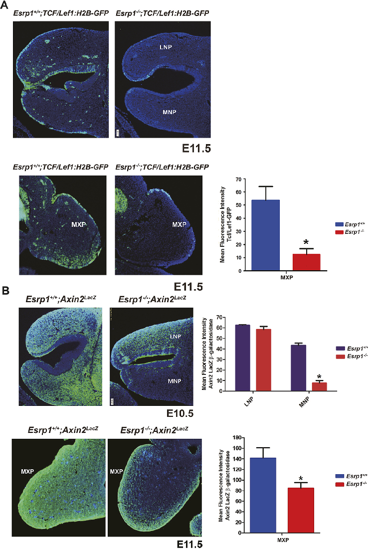 Specimen 6B Esrp1+/+;Axin2LacZ E10.5: embryonic day 10.5; Axin2tm1Wbm/Axin2+ (more )
