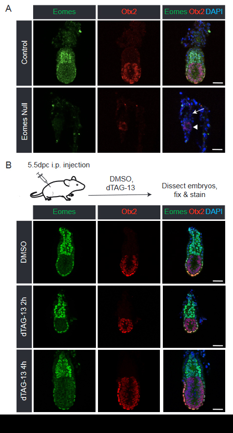 Note: Double labeled: green - Eomes; red - Otx2 (assay MGI:7627452).