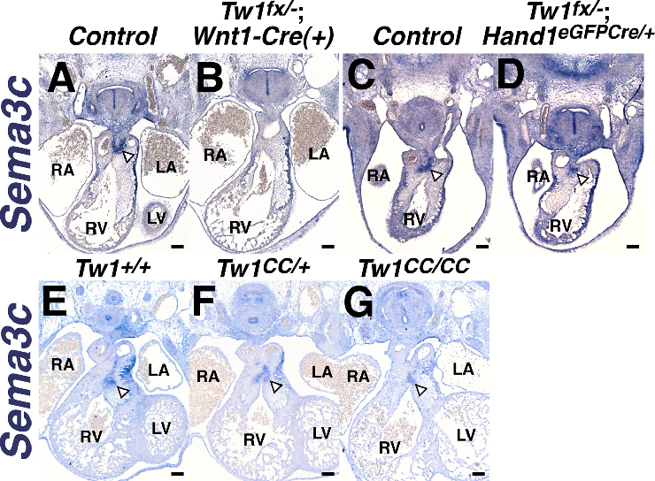 embryonic day 11.5; Twist1tm1Bhr/Twist1tm2Bhr, Hand1tm1.1(EGFP/cre)Abfi/Hand1+