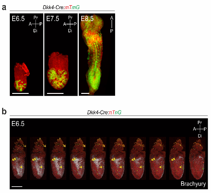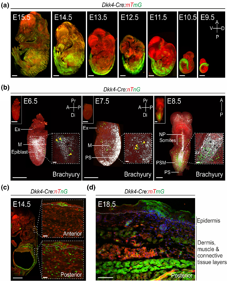 embryonic day 7.5; Dkk4em1(cre)Baz/Dkk4+, Gt(ROSA)26Sortm1(CAG-tdTomato*,-EGFP*)Ees/Gt(ROSA)26Sor+