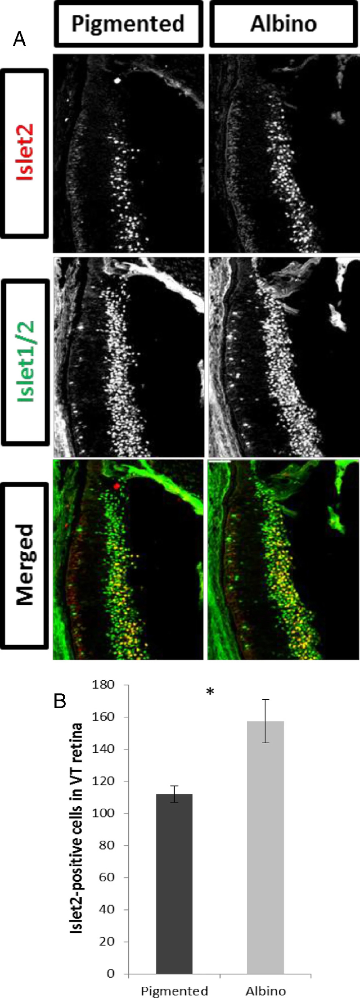 Note: Double labeled: green - Isl1 and Isl2; red - Zic2 (assay MGI:7645877).