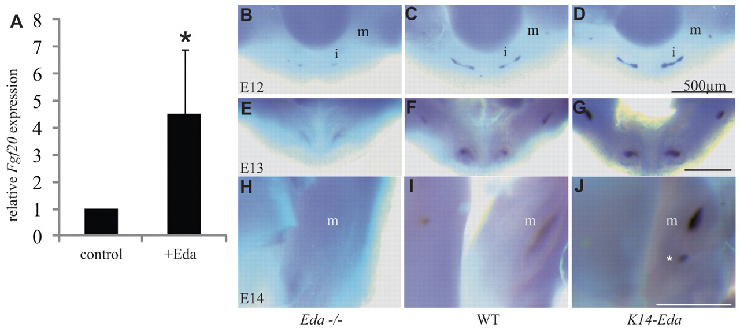 Haara O, et al., Ectodysplasin regulates activator-inhibitor balance in murine tooth development through Fgf20 signaling. Development. 2012 Sep;139(17):3189-99