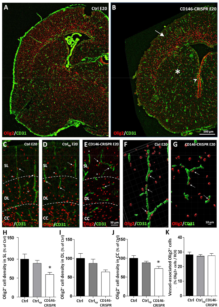 Note: Double labeled: green - Pecam1; red - Olig2 (assay MGI:7666235).