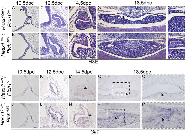 embryonic day 18.5; Hesx1tm1(cre)Jpmb/Hesx1+, Ptch1tm1Hahn/Ptch1tm1Hahn