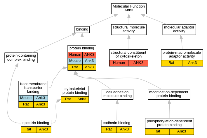| Molecular Function | GO:0005515 | protein binding | Ank3 | IPI | RGD:2955 | Rat | PMID:12805291|RGD:9685703 |