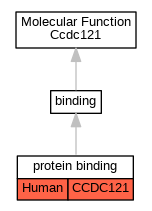 | Molecular Function | GO:0005515 | protein binding | CCDC121 | IPI | UniProtKB:Q9UBB9 | Human | PMID:31515488 |
