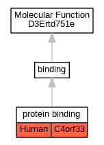 | Molecular Function | GO:0005515 | protein binding | C4orf33 | IPI | UniProtKB:Q15645 | Human | PMID:25416956 |