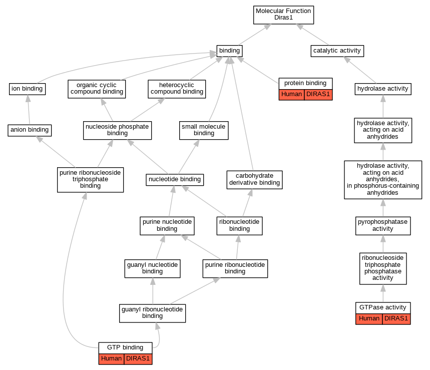 | Molecular Function | GO:0005525 | GTP binding | DIRAS1 | IDA | Human | PMID:12194967 | |