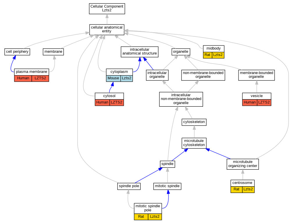 | Cellular Component | GO:0005813 | centrosome | Lzts2 | IDA | Rat | PMID:17351128|RGD:2316494 | |