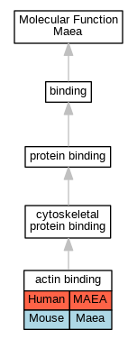 | Molecular Function | GO:0003779 | actin binding | MAEA | IDA | Human | PMID:16510120 | |