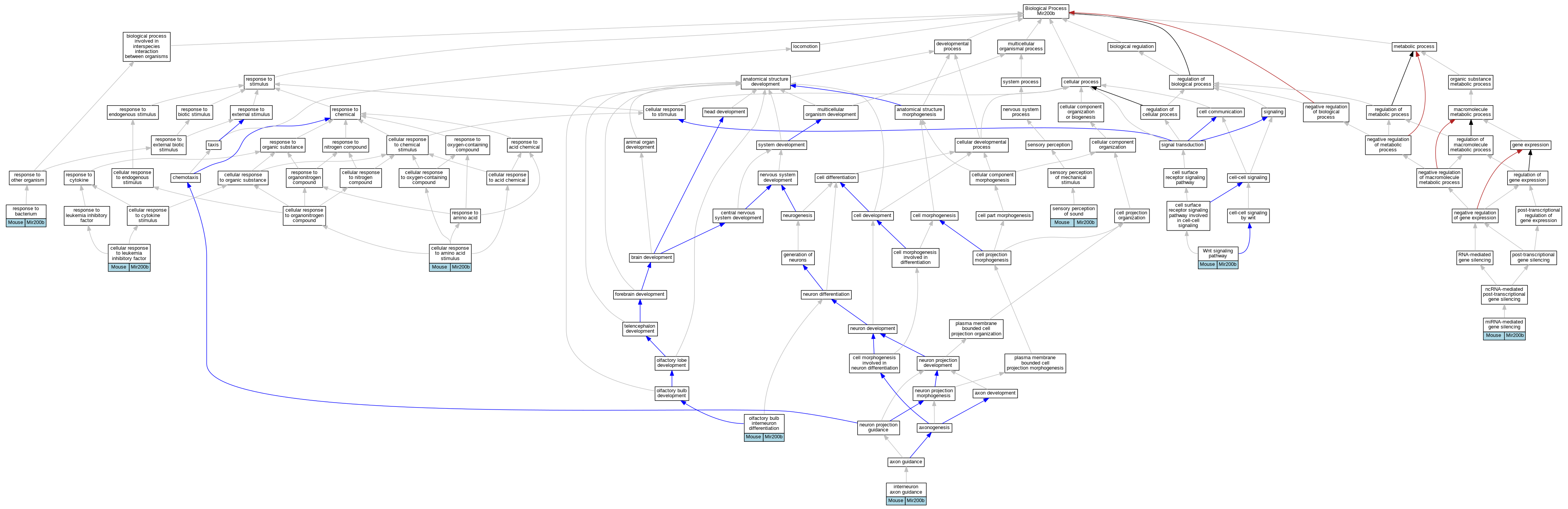 | Biological Process | GO:0021889 | olfactory bulb interneuron differentiation | Mir200b | IDA | Mouse | PMID:25937343 | |