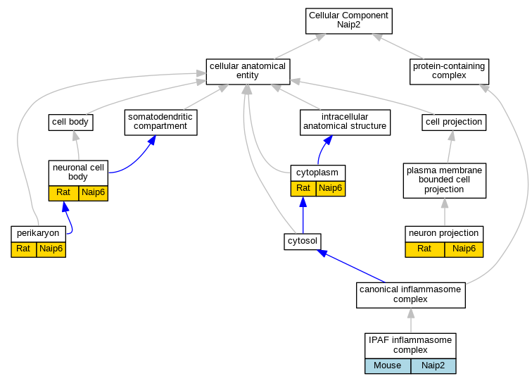 | Cellular Component | GO:0072557 | IPAF inflammasome complex | Naip2 | IDA | Mouse | MGI:MGI:5289703|PMID:21874021 | |