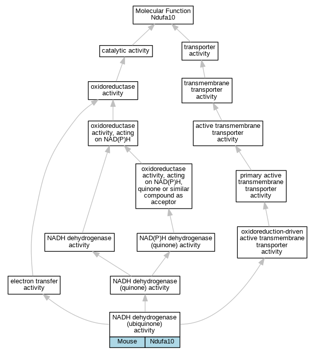 | Molecular Function | GO:0008137 | NADH dehydrogenase (ubiquinone) activity | Ndufa10 | IDA | Mouse | PMID:24652937 | |