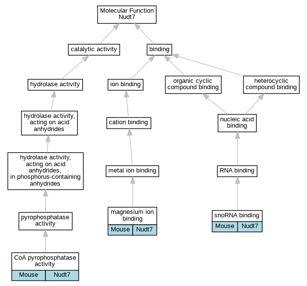 | Molecular Function | GO:0000287 | magnesium ion binding | Nudt7 | IDA | Mouse | MGI:MGI:6157214|PMID:29378847 | |