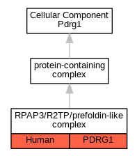 | Cellular Component | GO:1990062 | RPAP3/R2TP/prefoldin-like complex | PDRG1 | IPI | Human | PMID:31738558 |
