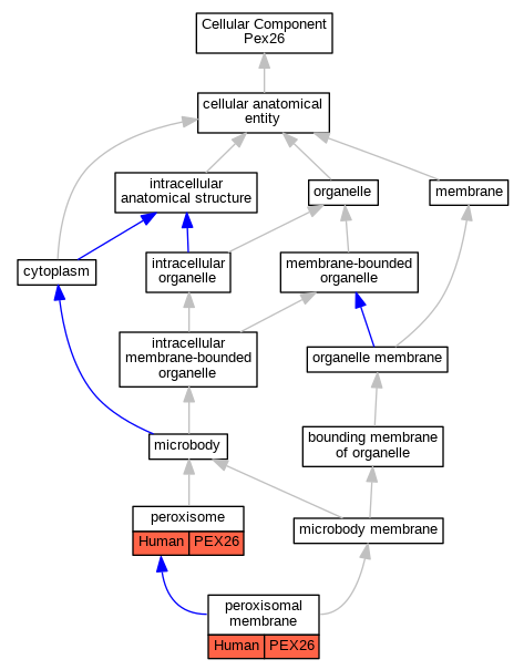 | Cellular Component | GO:0005778 | peroxisomal membrane | PEX26 | IDA | Human | PMID:12717447 | |
