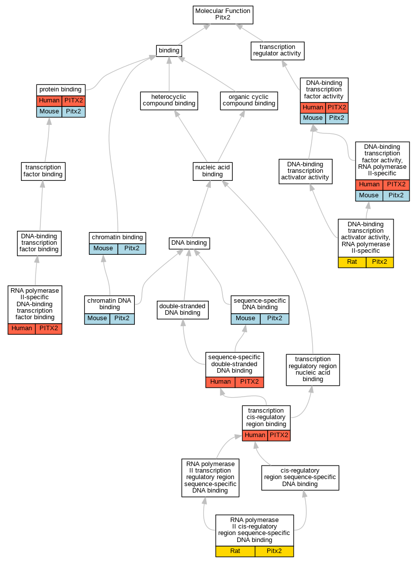 | Molecular Function | GO:0043565 | sequence-specific DNA binding | Pitx2 | IDA | Mouse | PMID:20816801 | |