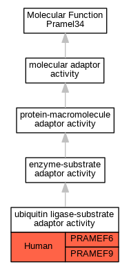 Molecular FunctionGO:1990756ubiquitin ligase-substrate adaptor activityPRAMEF9IDAHumanPMID:26138980