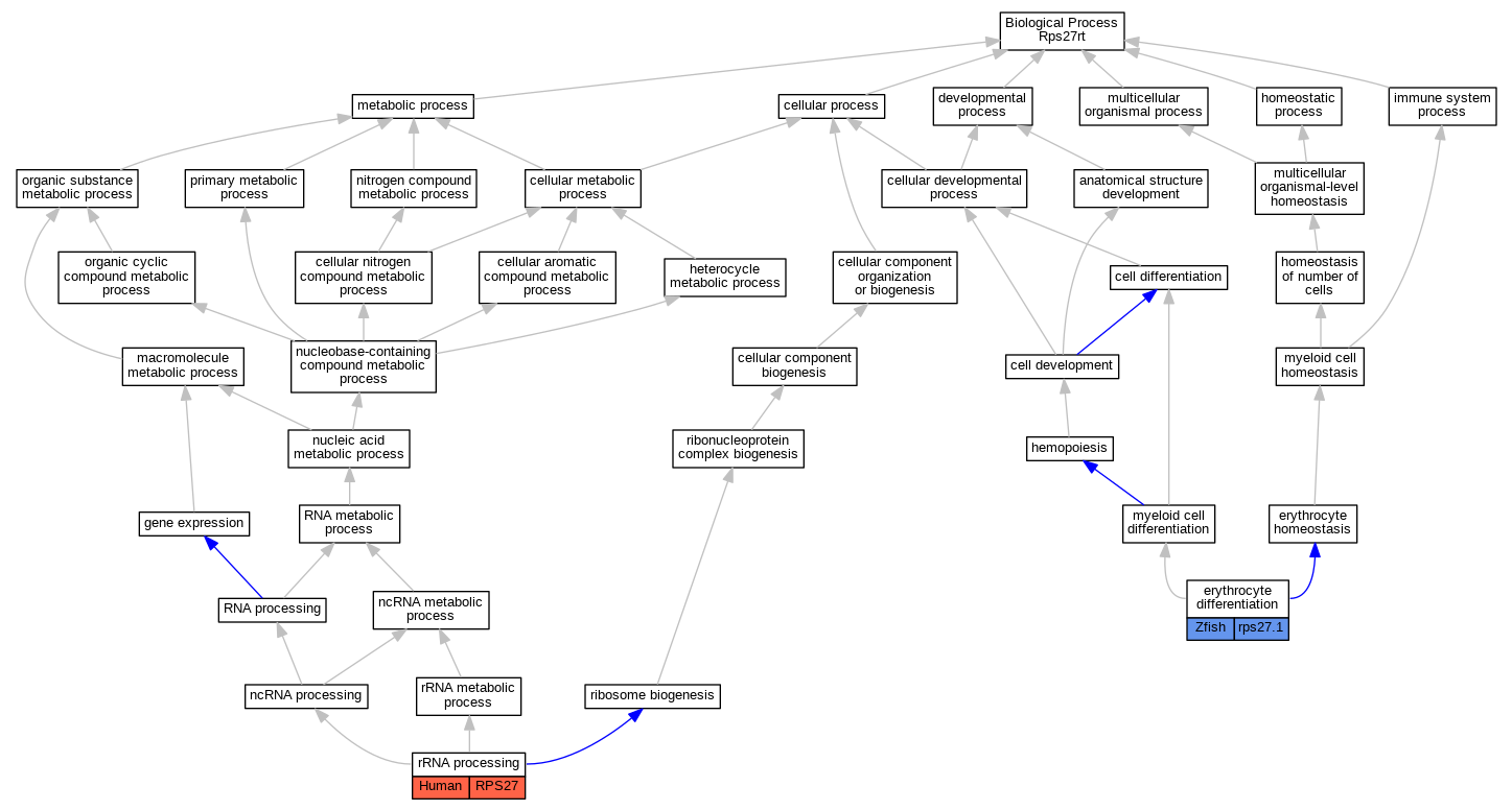 | Biological Process | GO:0006364 | rRNA processing | RPS27 | IMP | Human | PMID:25424902 |
