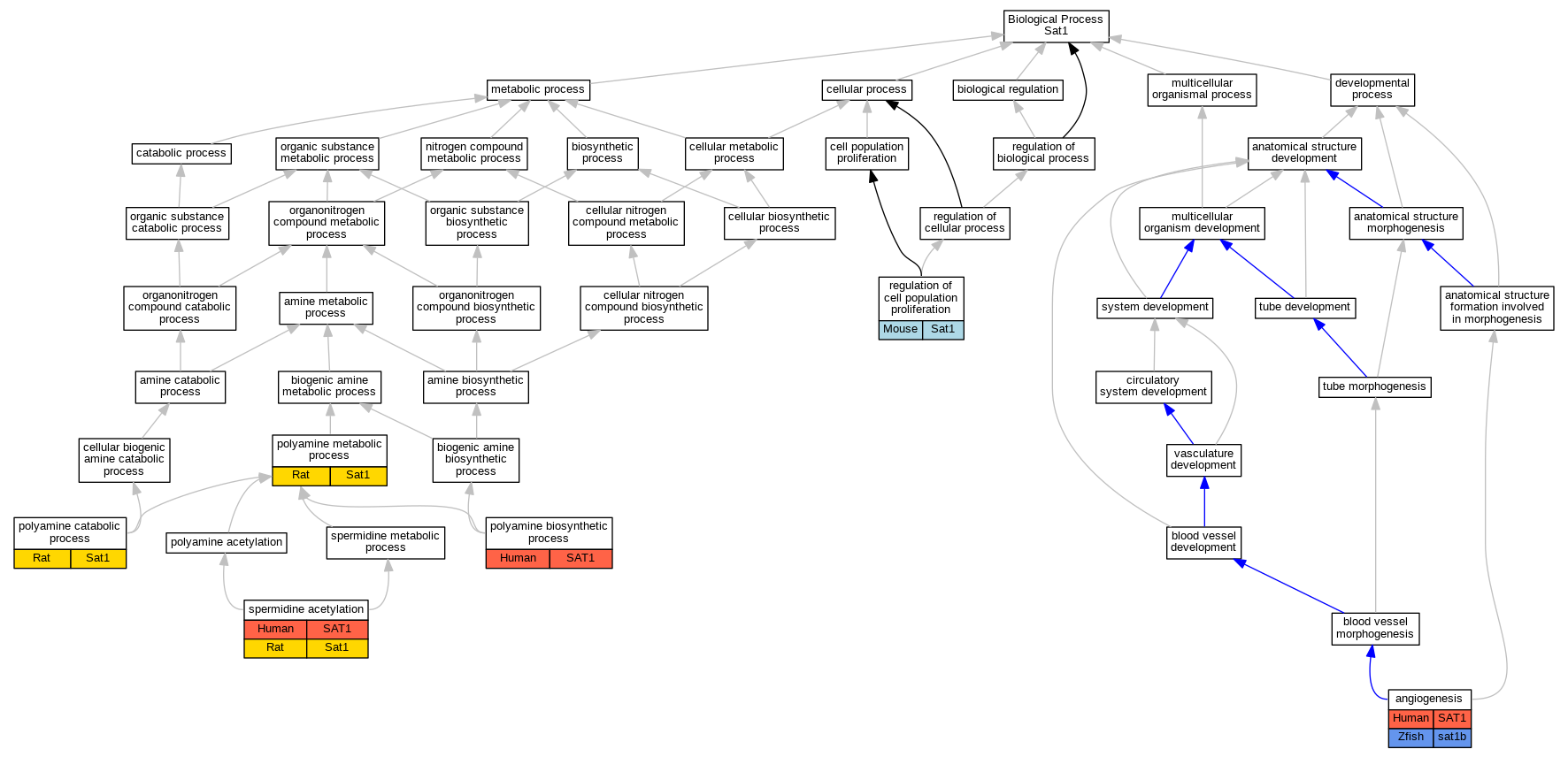 Biological Process | GO:0001525 | angiogenesis | SAT1 | IEP | Human | PMID:11866539 | |