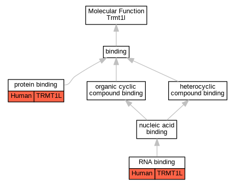 | Molecular Function | GO:0003723 | RNA binding | TRMT1L | HDA | Human | PMID:22658674 | |