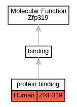 | Molecular Function | GO:0005515 | protein binding | ZNF319 | IPI | UniProtKB:Q9BUH8 | Human | PMID:32296183 |