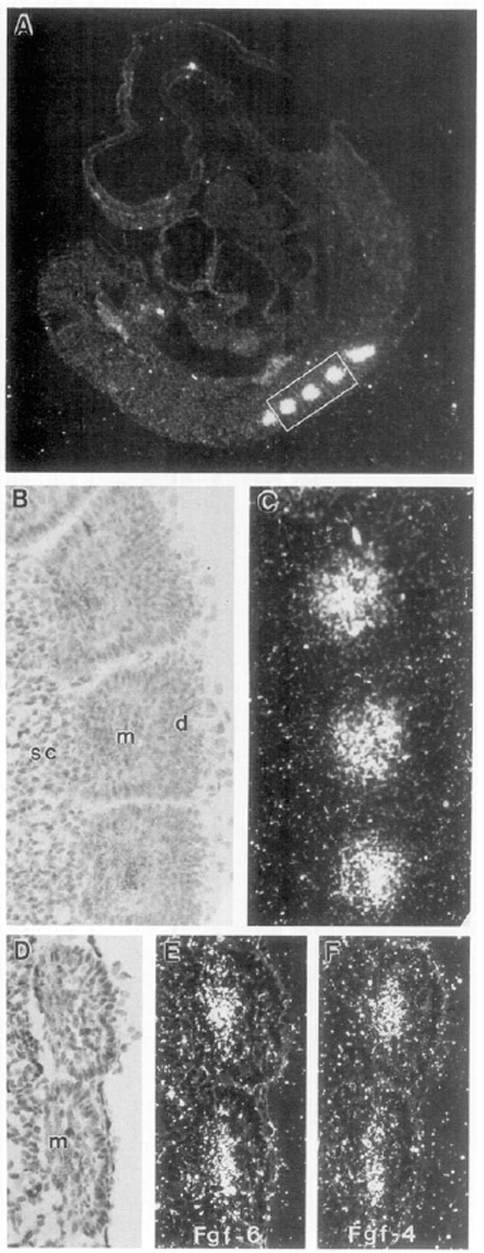 | Copyright | Reprinted with permission from Elsevier from 10.1006/dbio.1993.1212 Dev Biol 158: 549-54, Han JK; Martin GR, Embryonic expression of Fgf-6 is restricted to the skeletal muscle lineage. Copyright 1993 | |||||||||||||||
