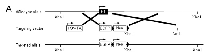 | Caption | Schematic representation of the targeting construct design and simplified restriction maps of the wild-type allele and targeted allele, Cd69tm2Naka. Filled box represents a region of the first exon of the Cd69 gene deleted by homologous recombination. Triangles represent loxp sites. | ||||