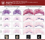 Arpc1aem1(IMPC)J/Arpc1aem1(IMPC)J (-/-) placentas have an expanded spongiotrophoblast layer, multiple labyrinth zone defects, and nearly absent chorioallantoic branching at E10.5.Arpc1aem1(IMPC)J/Arpc1aem1(IMPC)JC57BL/6NJ-Arpc1aem1(IMPC)J/Mmjax