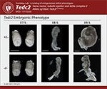 Caption: Tedc2em1(IMPC)J/Tedc2em1(IMPC)J (-/-) embryonic phenotypes include failure to turn, kinked caudal neural tube, laterally splayed and open cranial neural tube, abnormal head and heart shape and cardiac edema.