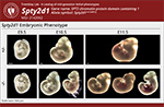 Caption: Spty2d1em1(IMPC)J/Spty2d1em1(IMPC)J (-/-) embryonic phenotype. Embryos are smaller, some have abnormally shaped heads and abnormal blood pooling. By E11.5, some start dying and those alive show abnormal blood pooling in and near the heart. A minority of embryos have abnormal hearts and pericardial enema. Yolk sac vessels are pale. All embryos are dying by E12.5.
