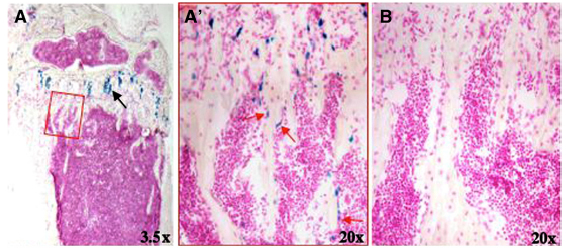 The procollagen, type II, alpha 1 promoter was used to drive expression of cre recombinase in chondrocytes versus perichondrial cells upon proper administration of tamoxifen.