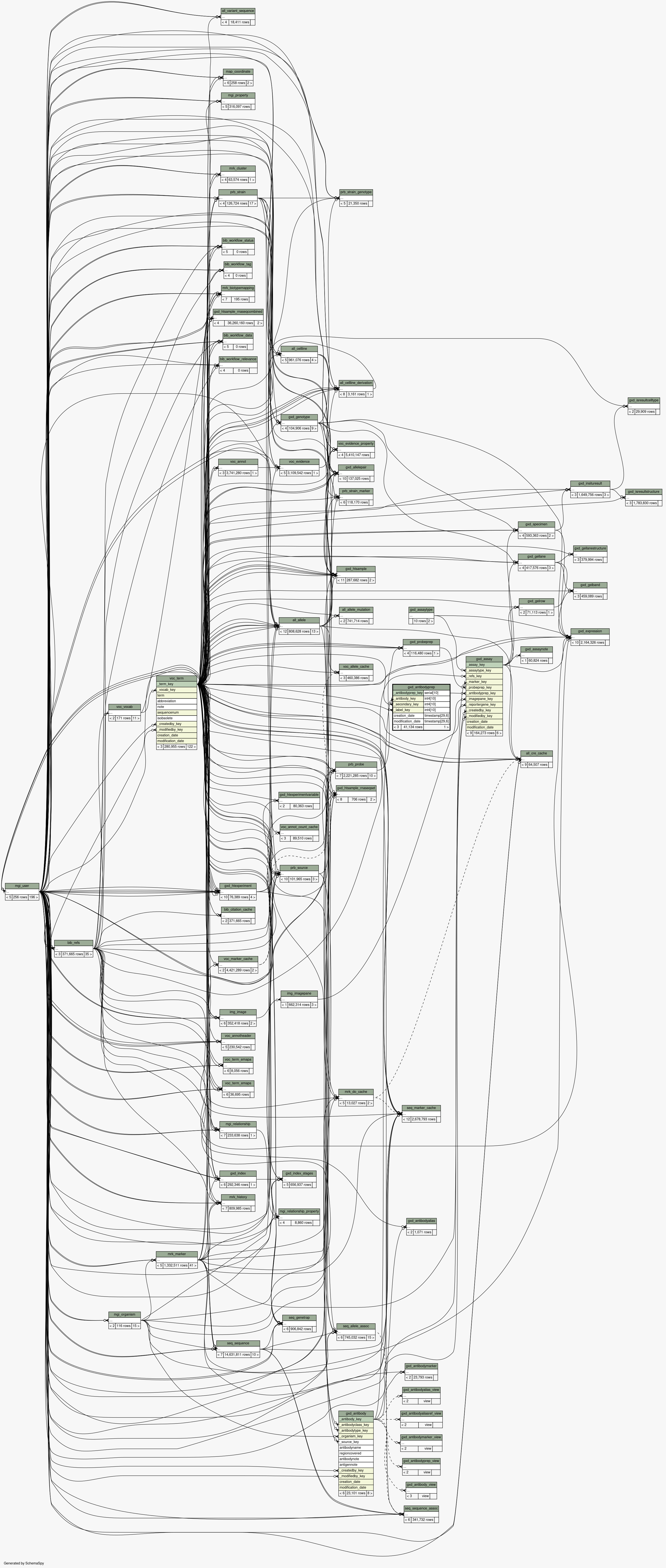 | Table pub.mgd.gxd_antibodyprep Defines the Antibody preparation for an expression assay. The Antibody preparation specifies the antibody and detection system used. The detection is a combination of a Secondary Antibody and a labelling material. See GXD_Assay, GXD_Antibody, GXD_Secondary, GXD_Label.